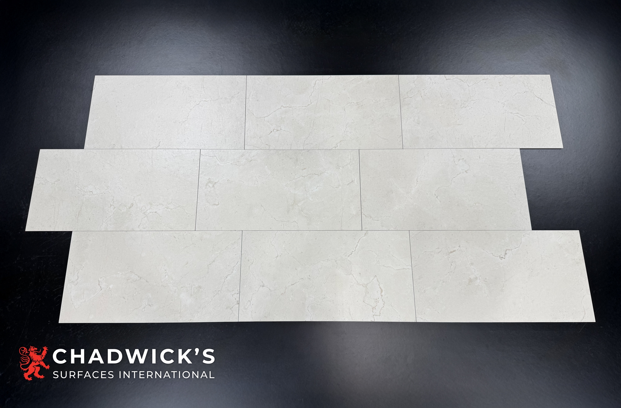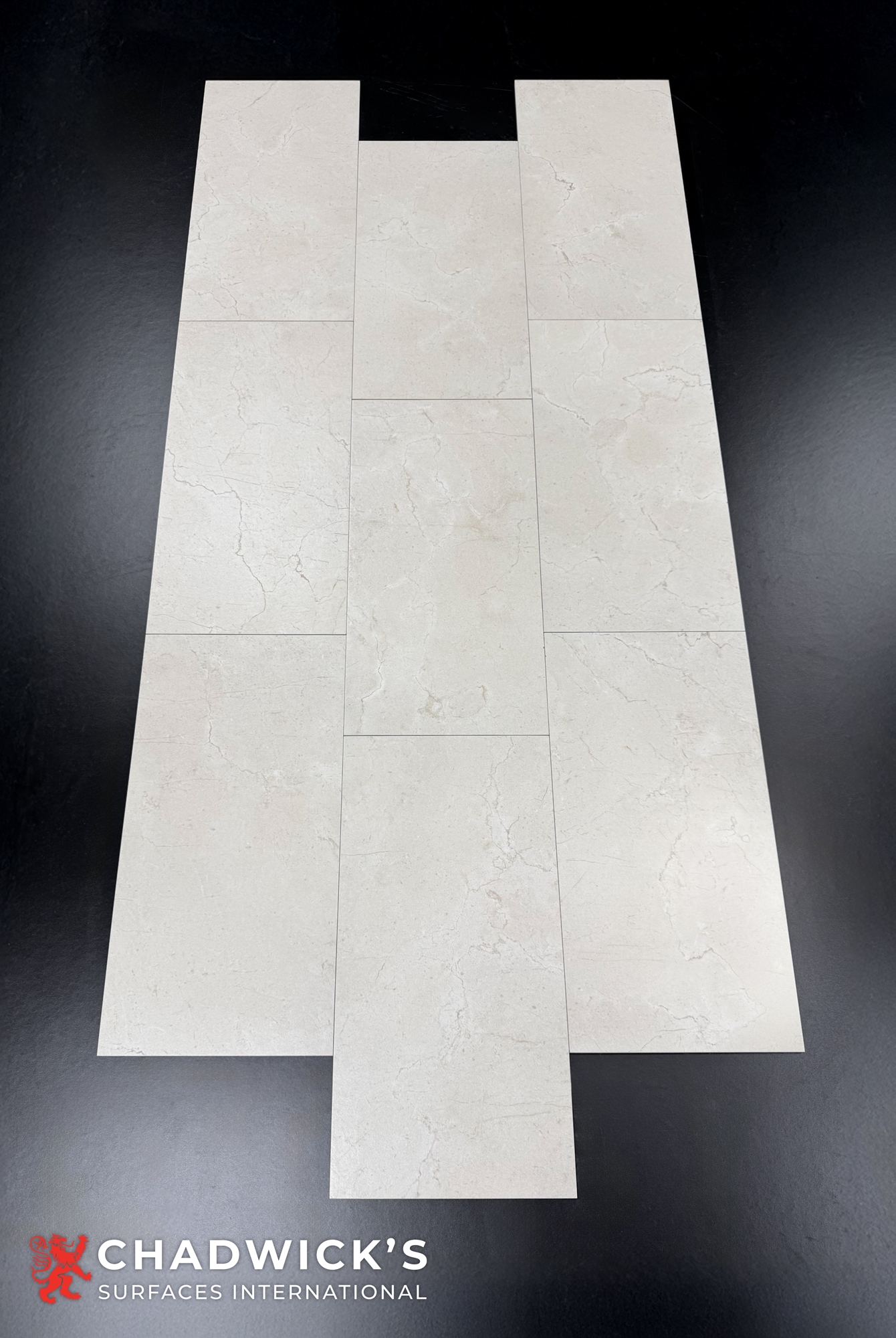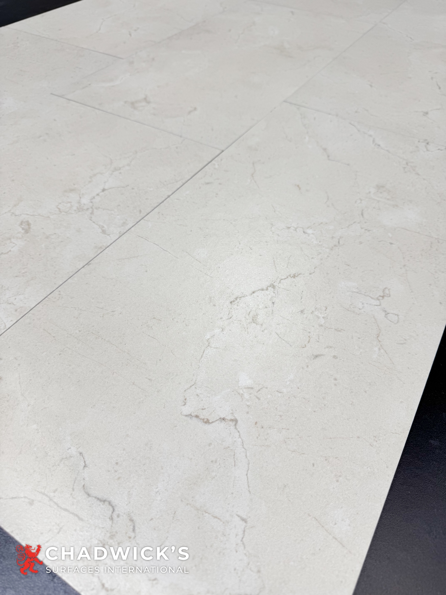 Porcelain field tile that stands out for its light and natural tones, evoking the purity of limestone and the refined elegance of Marfil marble.